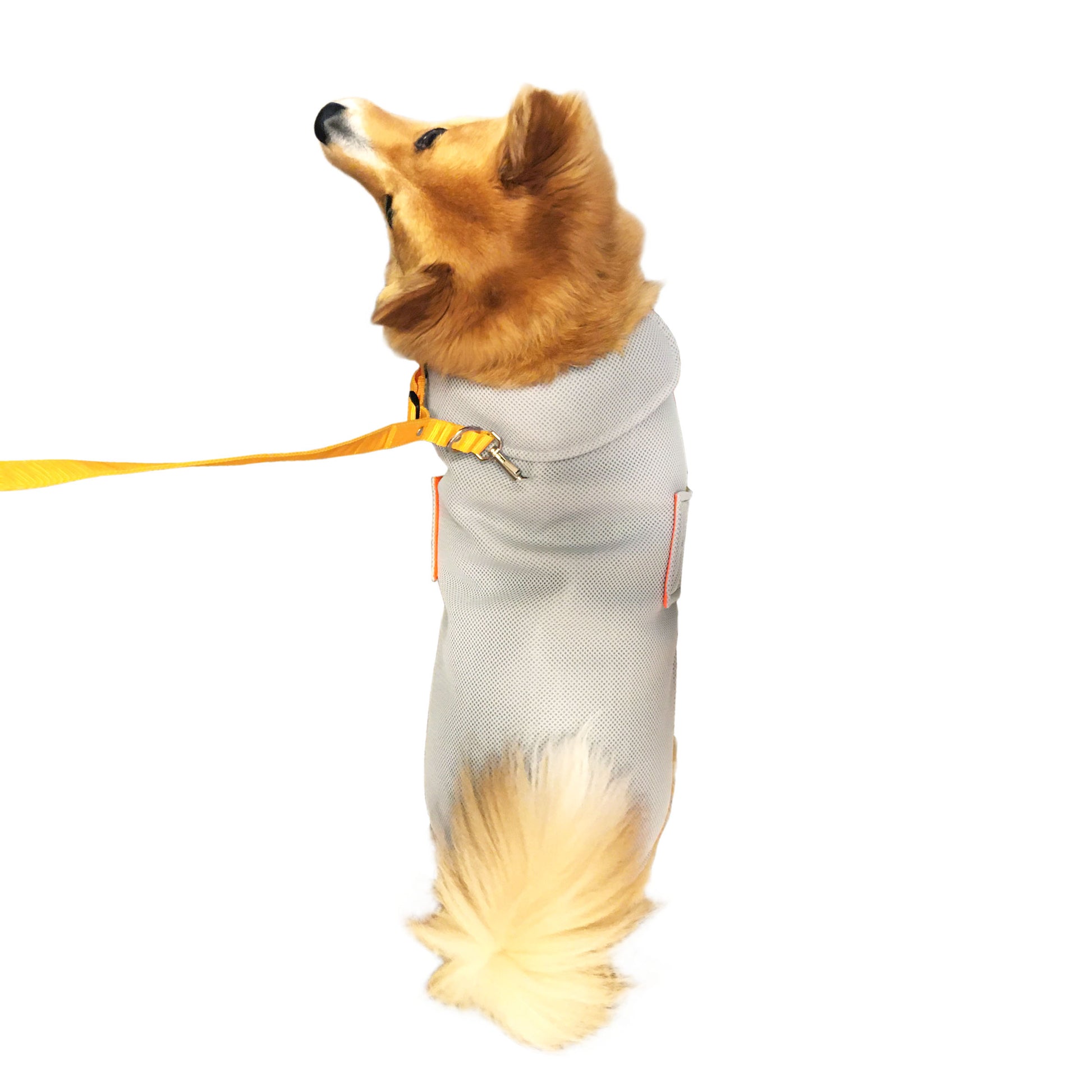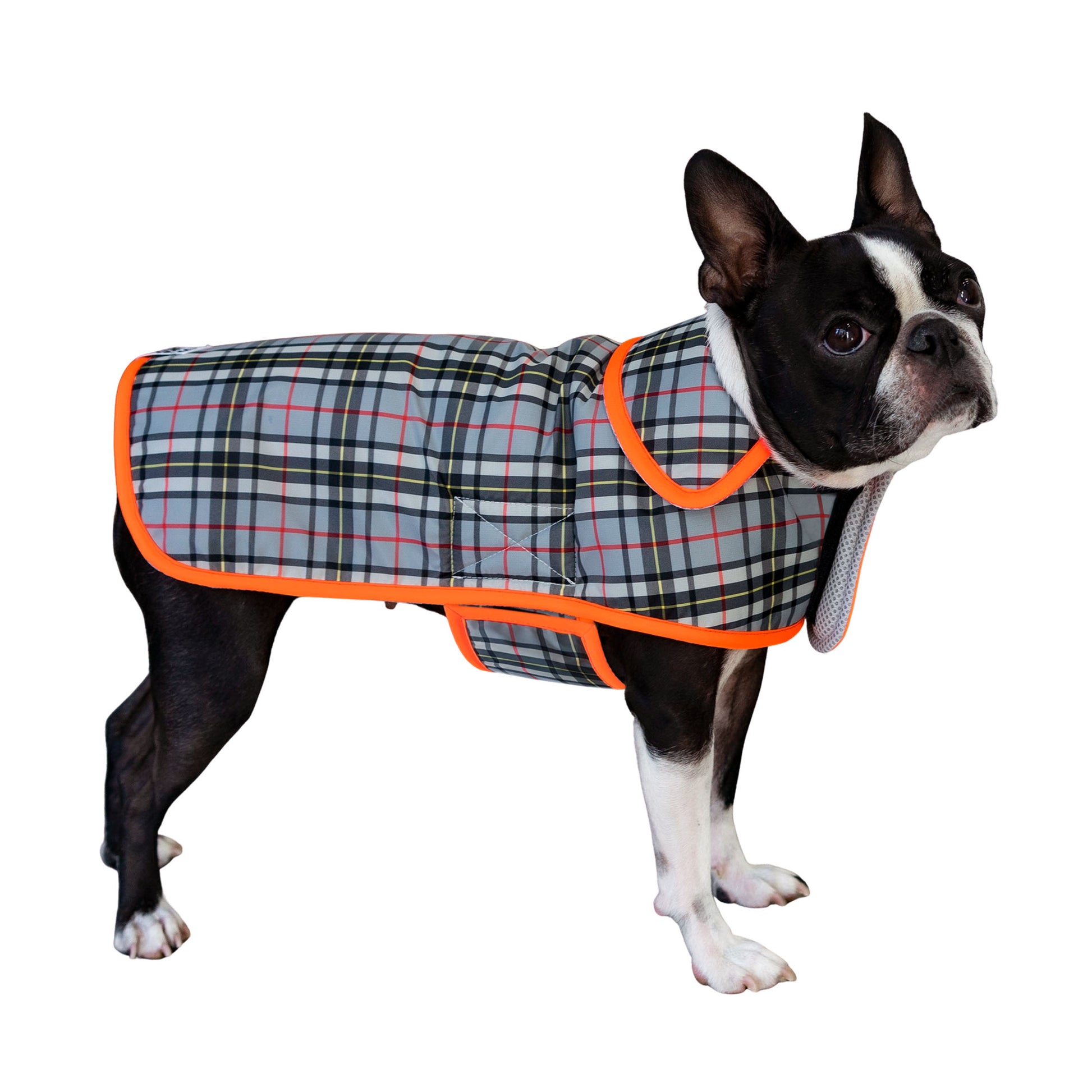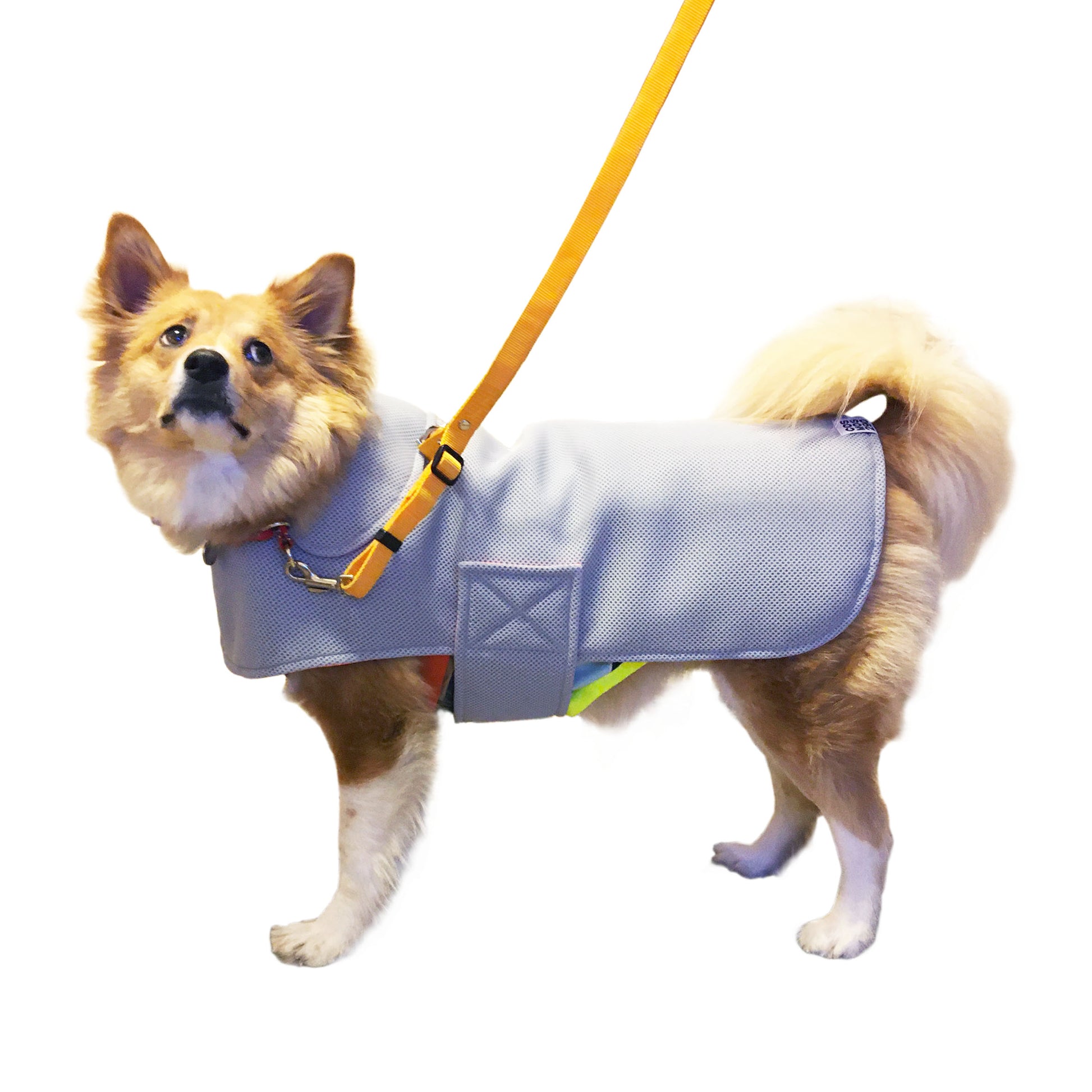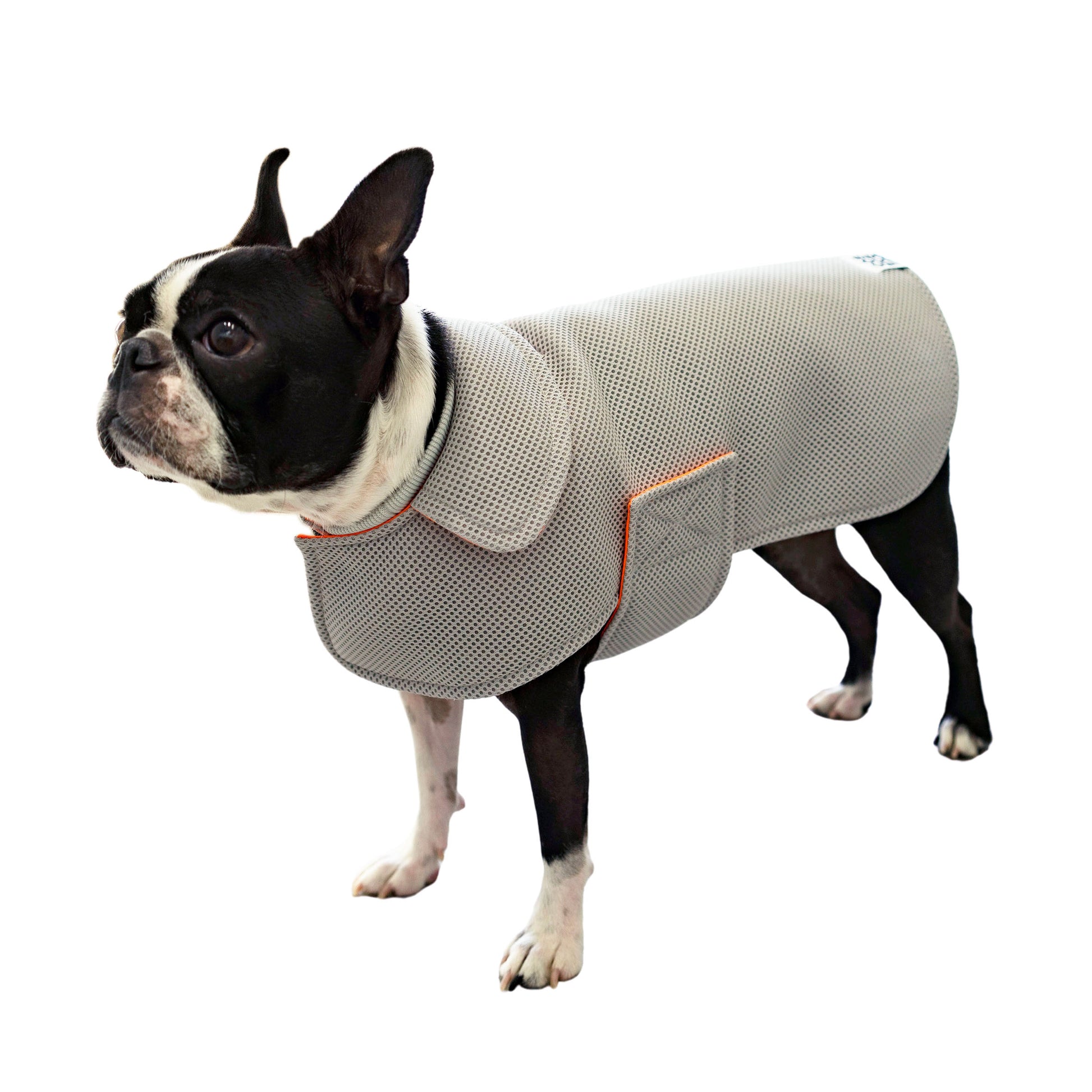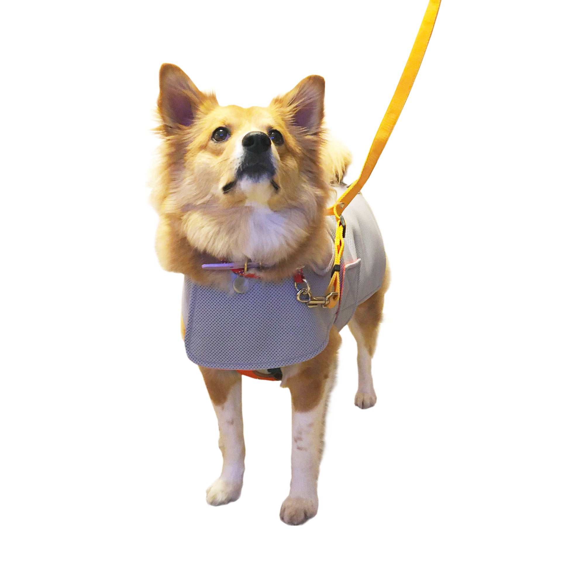 モデル: スミちゃん/ ボストンテリア 6kg Mサイズ着用、リンちゃん/ 雑種14kg Lサイズ着用