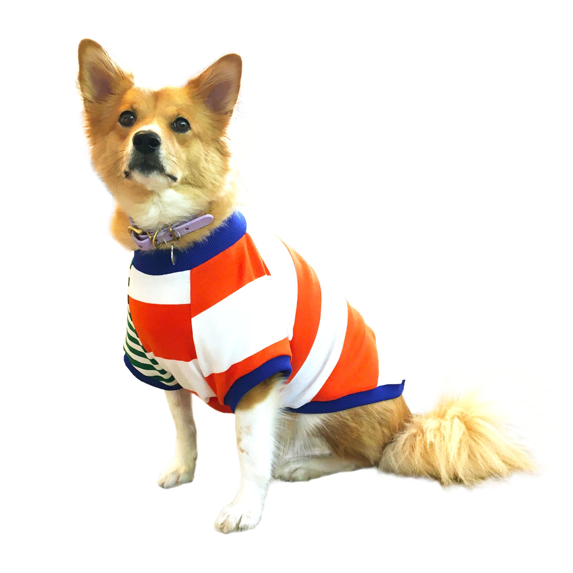 モデル: マーロちゃん(トイプードル 4.5kg) サイズ2、リンちゃん(雑種15kg) サイズ5着用
