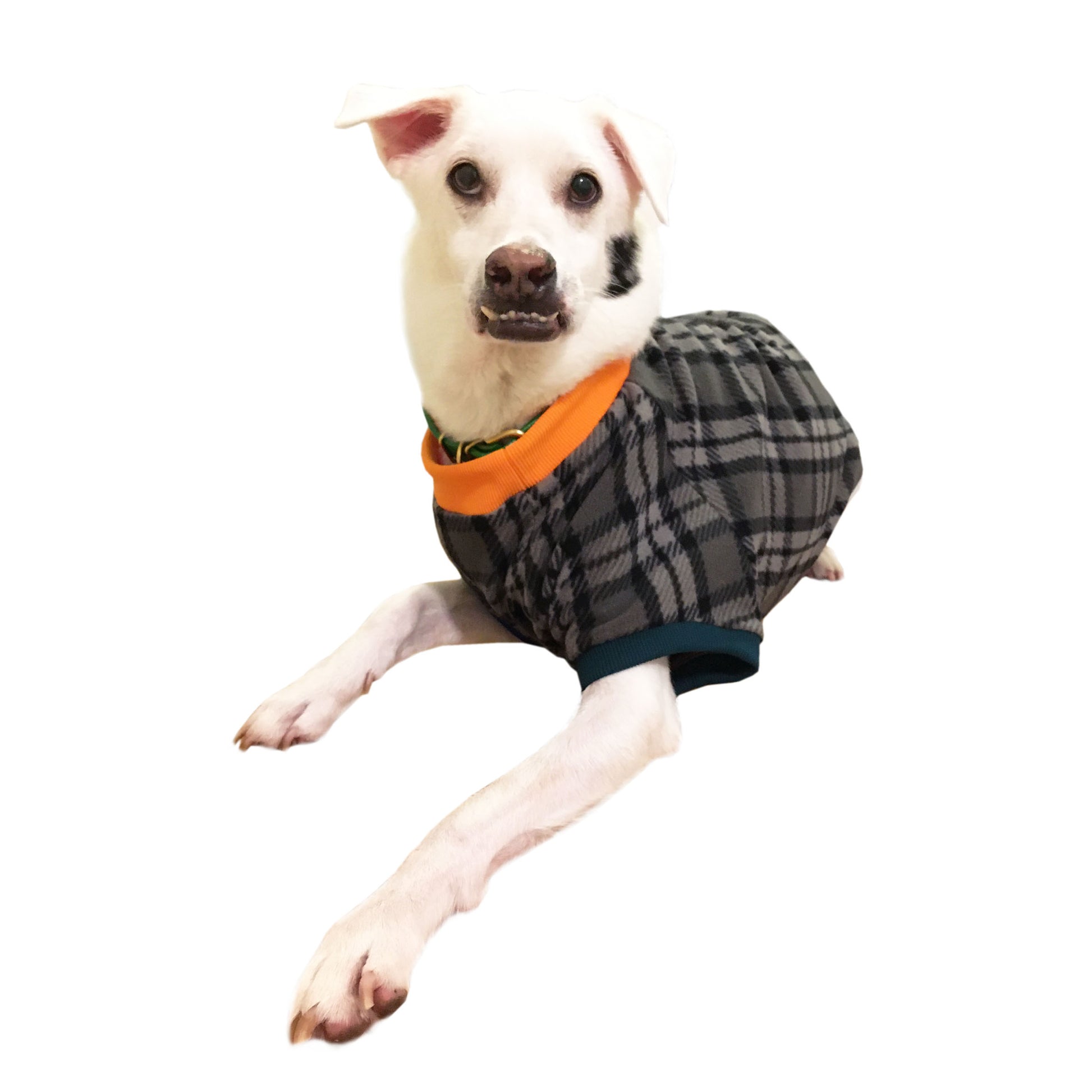 モデル: ジョンちゃん (雑種12kg)、リンちゃん (雑種15kg) 共にサイズ5 (XL) 着用
